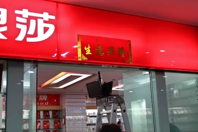 圖為浪莎員工正在手忙腳亂的貼剛剛從市委書記手中領到的春聯: