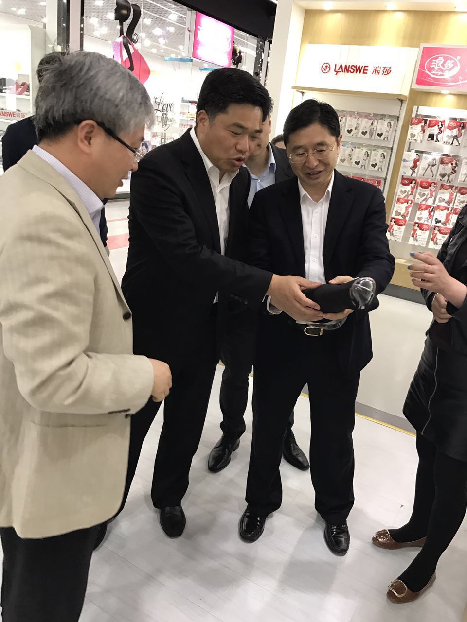 周柳軍司長參觀了公司展廳,領略了襪業航母的風采后贊嘆不已,在肯定了成就的同時,周司長還提出了一些想法和建議,浪莎董事長深受啟迪,并馬上著手落實。
