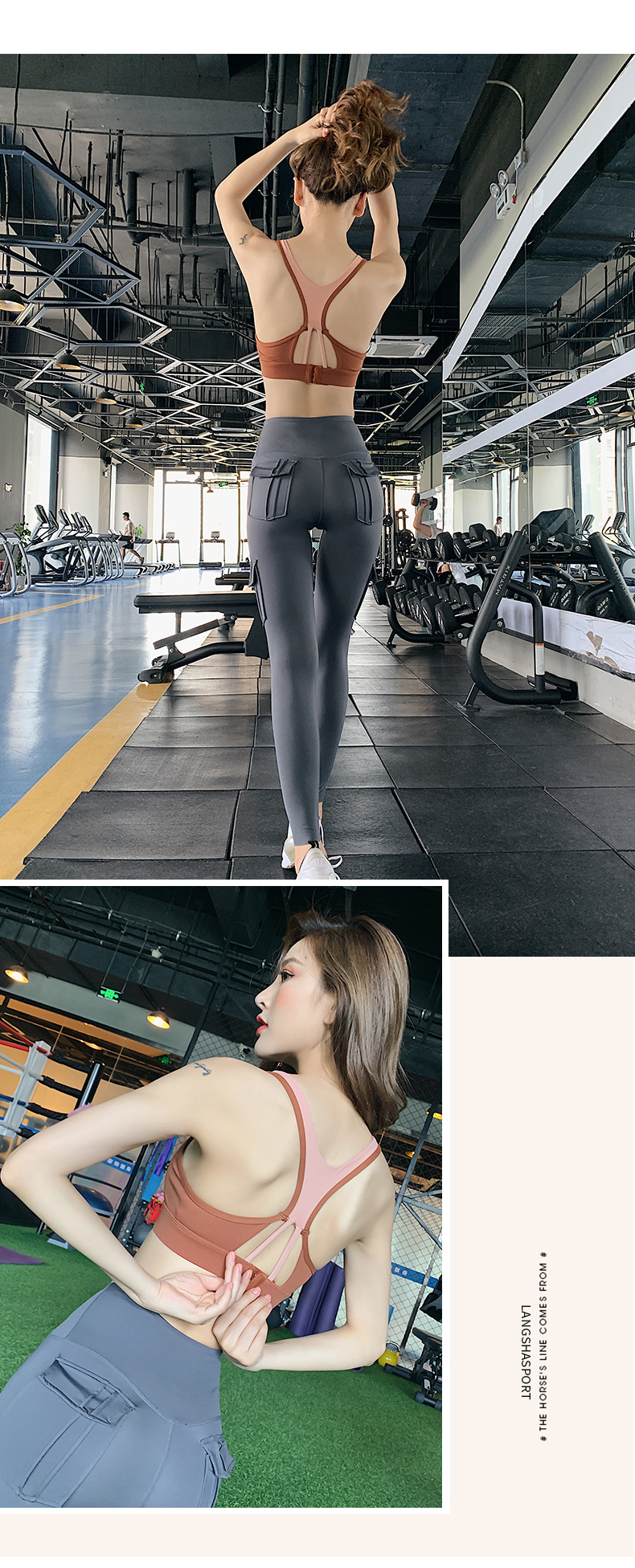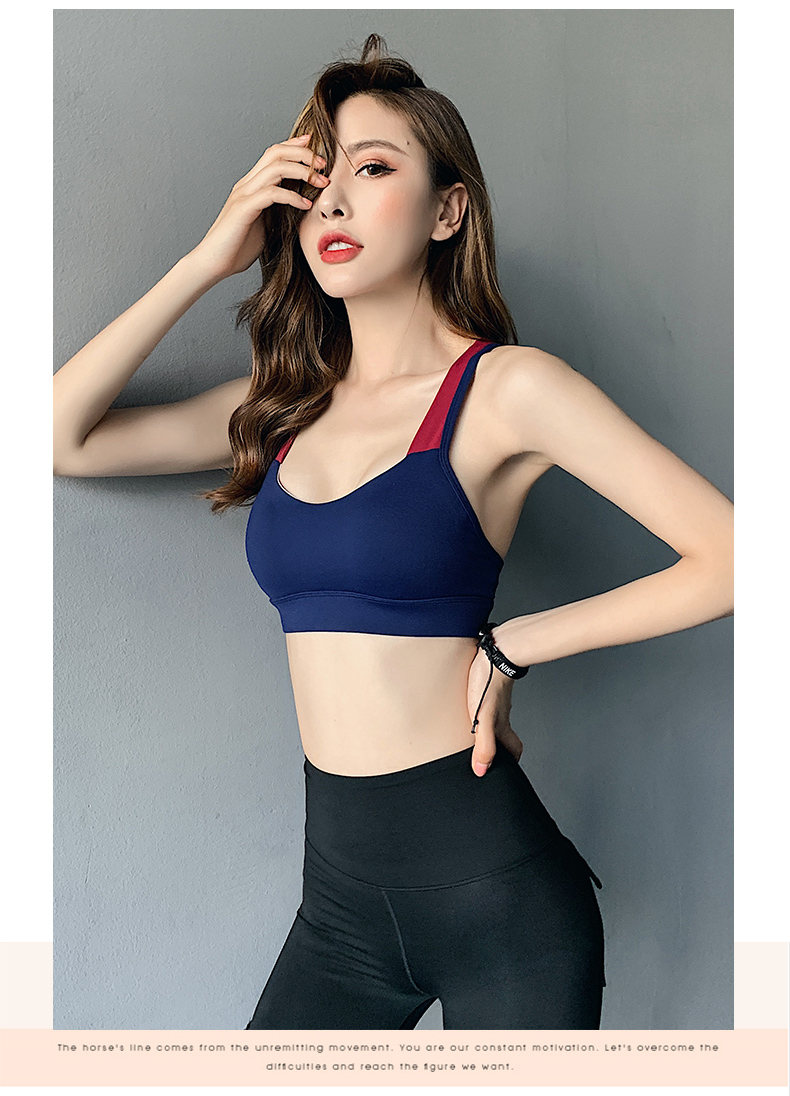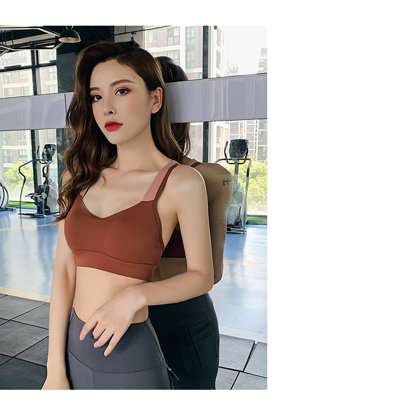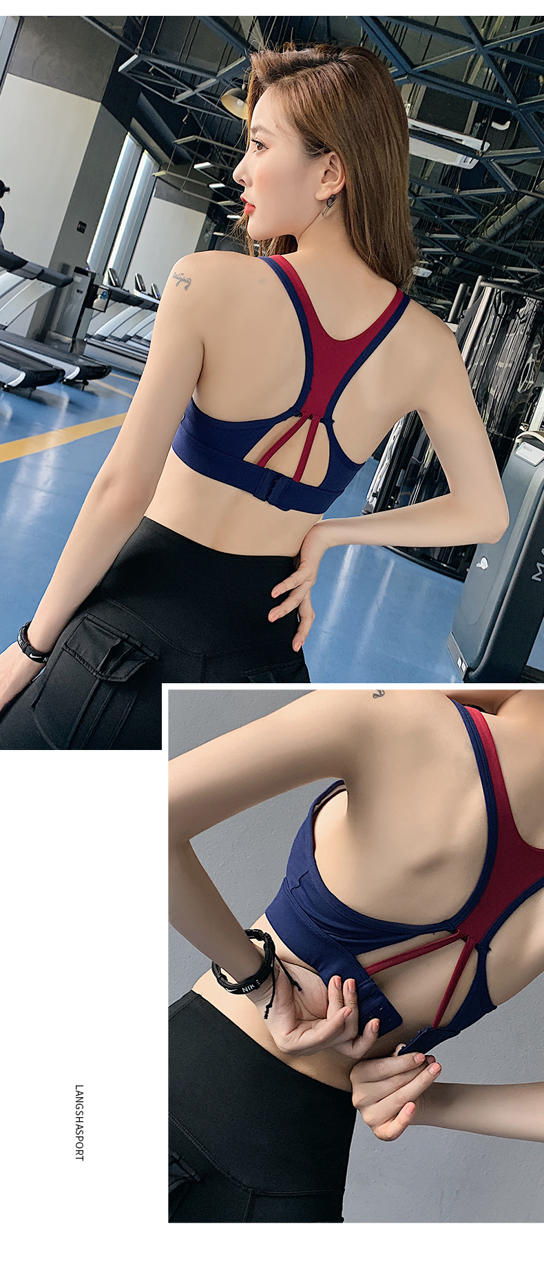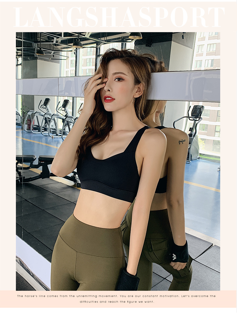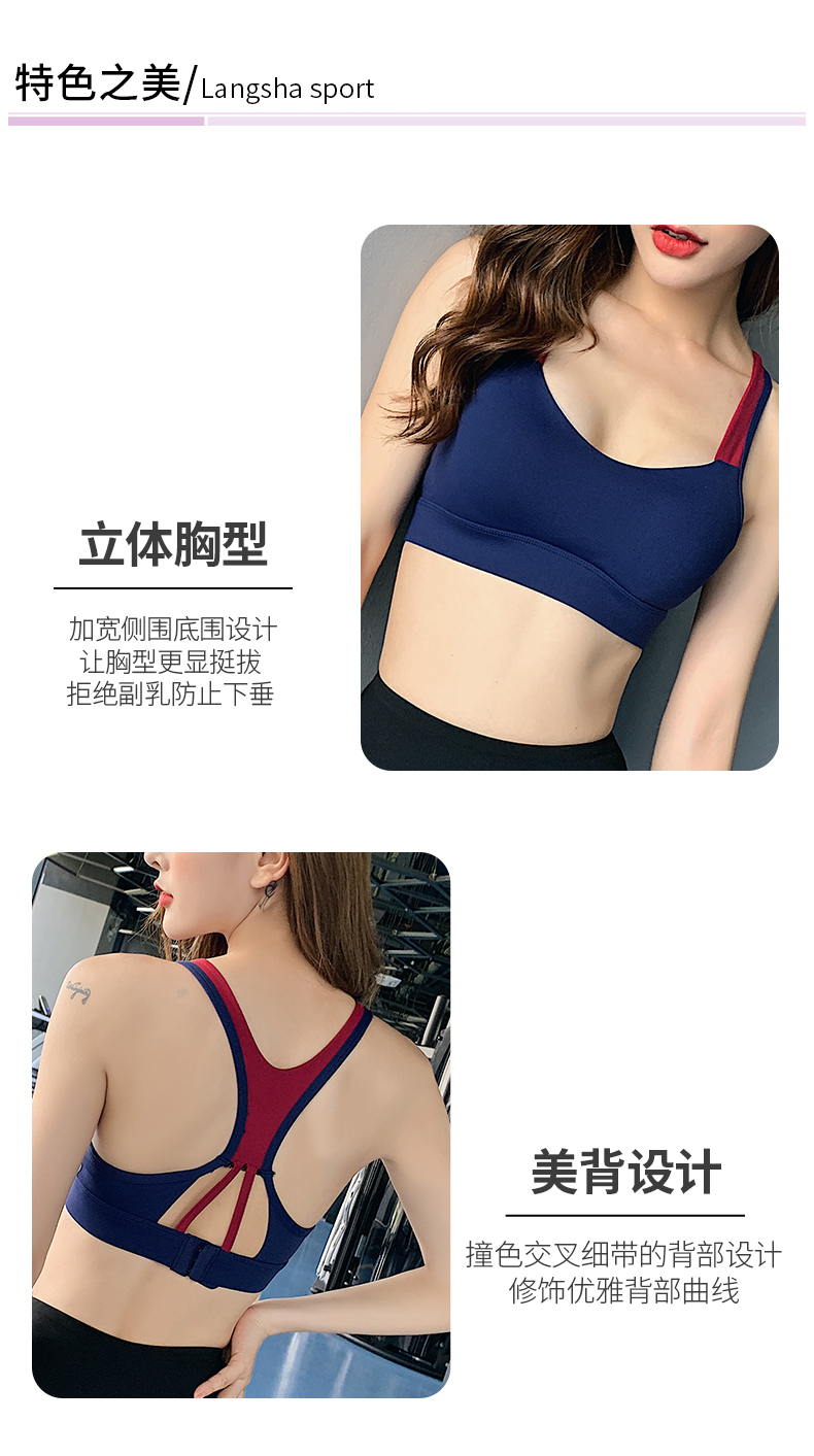 浪莎運(yùn)動(dòng)內(nèi)衣女搭扣防震跑步聚攏定型美背瑜伽背心一體式健身文胸