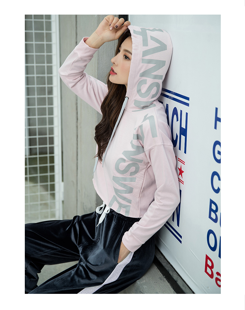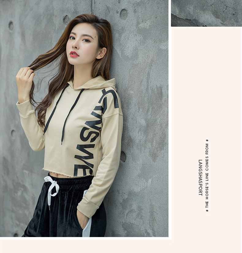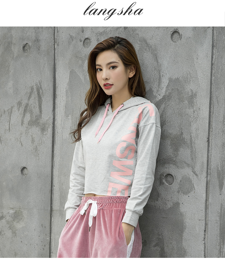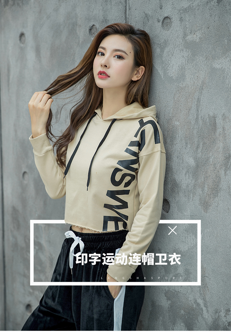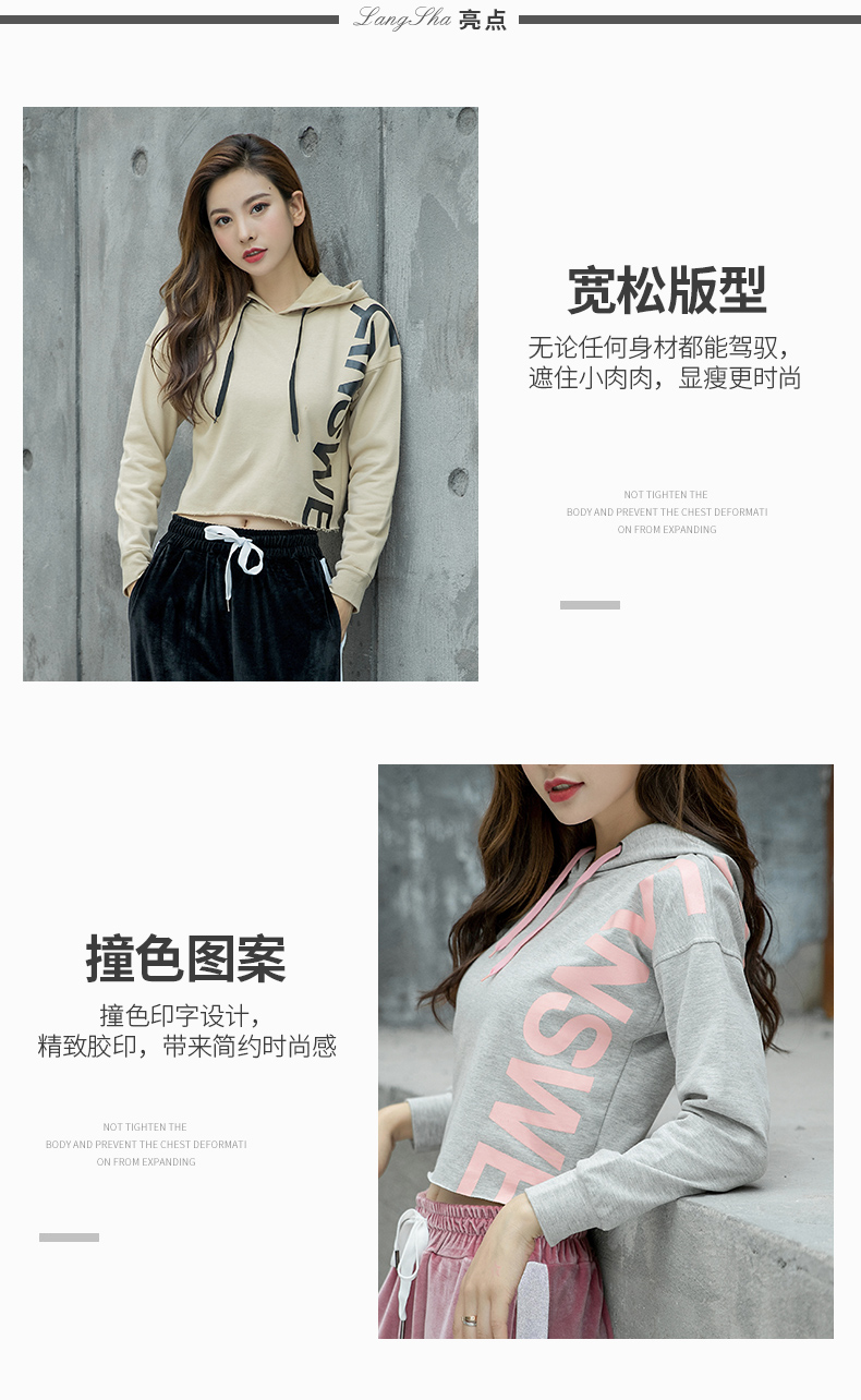 特價(jià)浪莎運(yùn)動(dòng)衛(wèi)衣女寬松連帽休閑純棉套頭衫春秋瑜伽服健身長袖