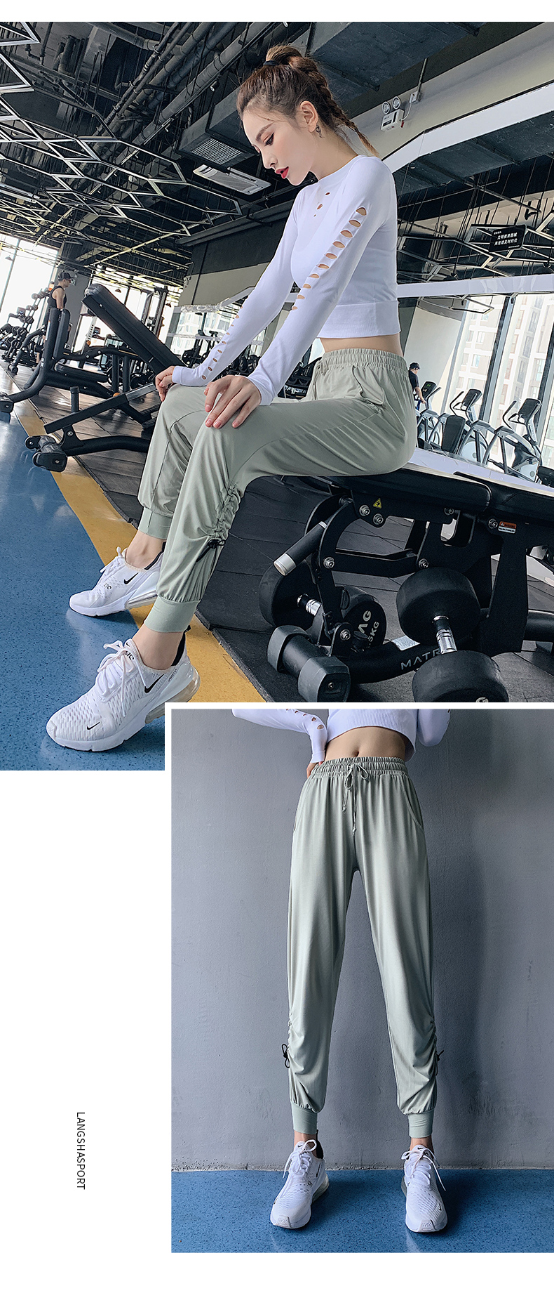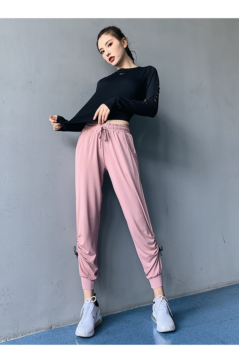 特價浪莎健身褲女寬松束腳收口跑步舞蹈薄款速干高腰瑜伽褲運動褲