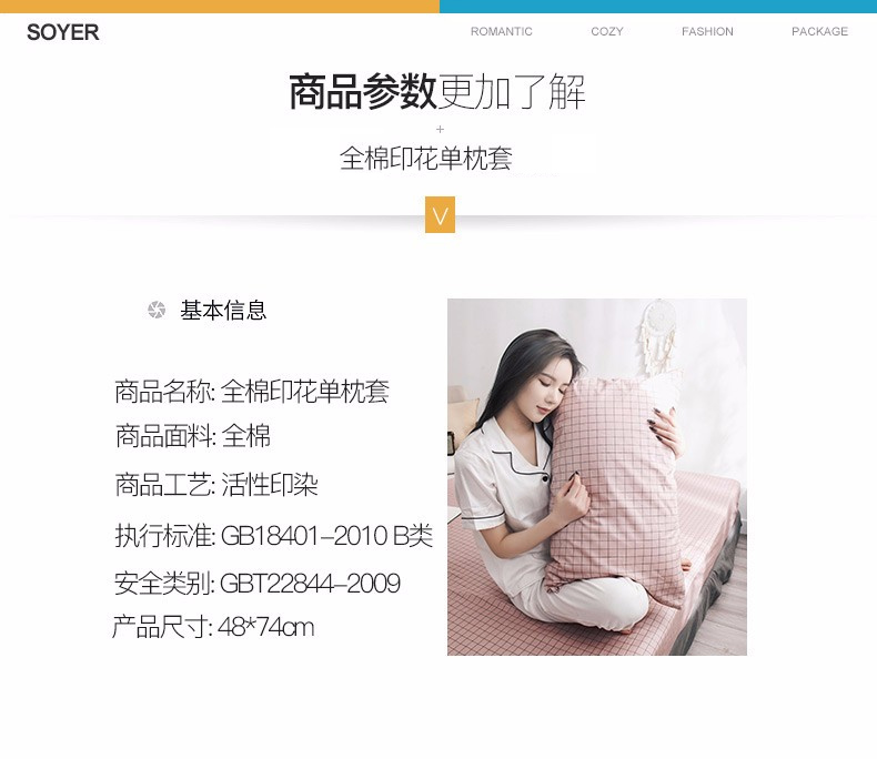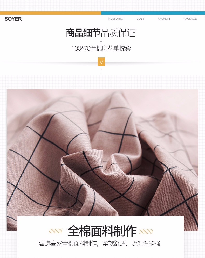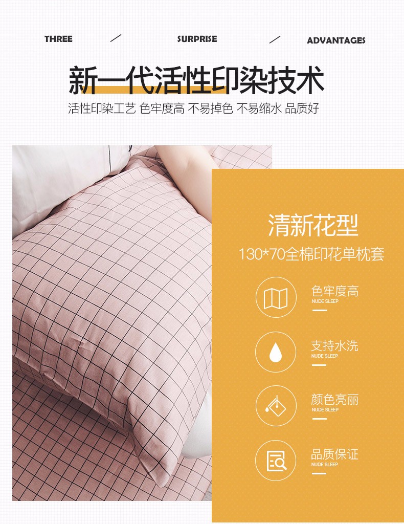 浪莎全棉枕套一對裝純棉印花枕頭套單人學(xué)生宿舍枕芯套48x74cm