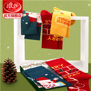 浪莎圣誕襪子女中筒襪秋冬季可愛本命年紅襪子圣誕節禮盒加厚棉襪