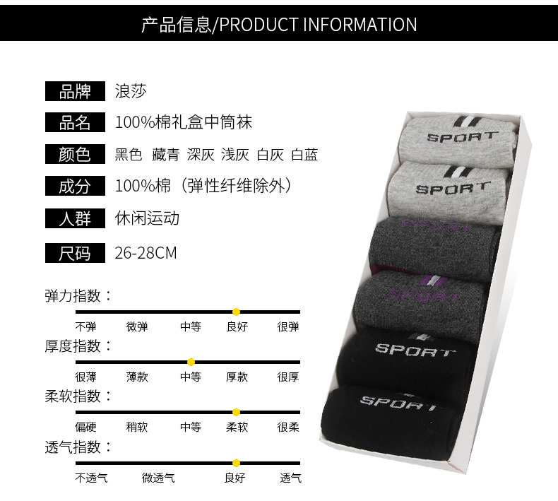 浪莎襪子男士純棉中筒襪秋季薄款吸汗運(yùn)動(dòng)籃球全棉春秋透氣短襪潮