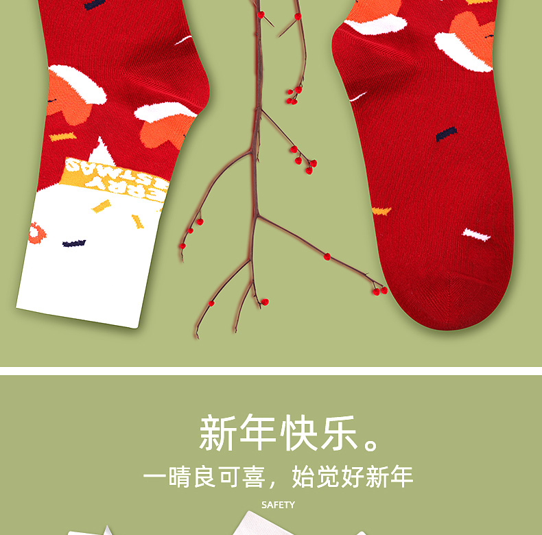 浪莎圣誕襪子女中筒襪秋冬季可愛(ài)本命年紅襪子圣誕節(jié)禮盒加厚棉襪